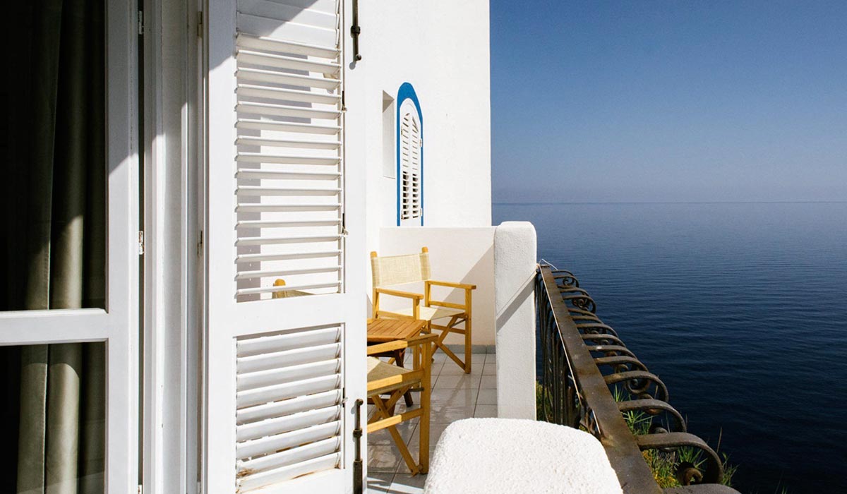 Terrazzi e giardini circondano i due piani dell’albergo, permettendo di godere del panorama da ogni punto. Si può scegliere fra le superior, dotate di giardino o terrazzo privato con affaccio sul tramonto, e le premium, a picco sul mare, con terrazzo vista isole ed alcune con affaccio alba – tramonto.